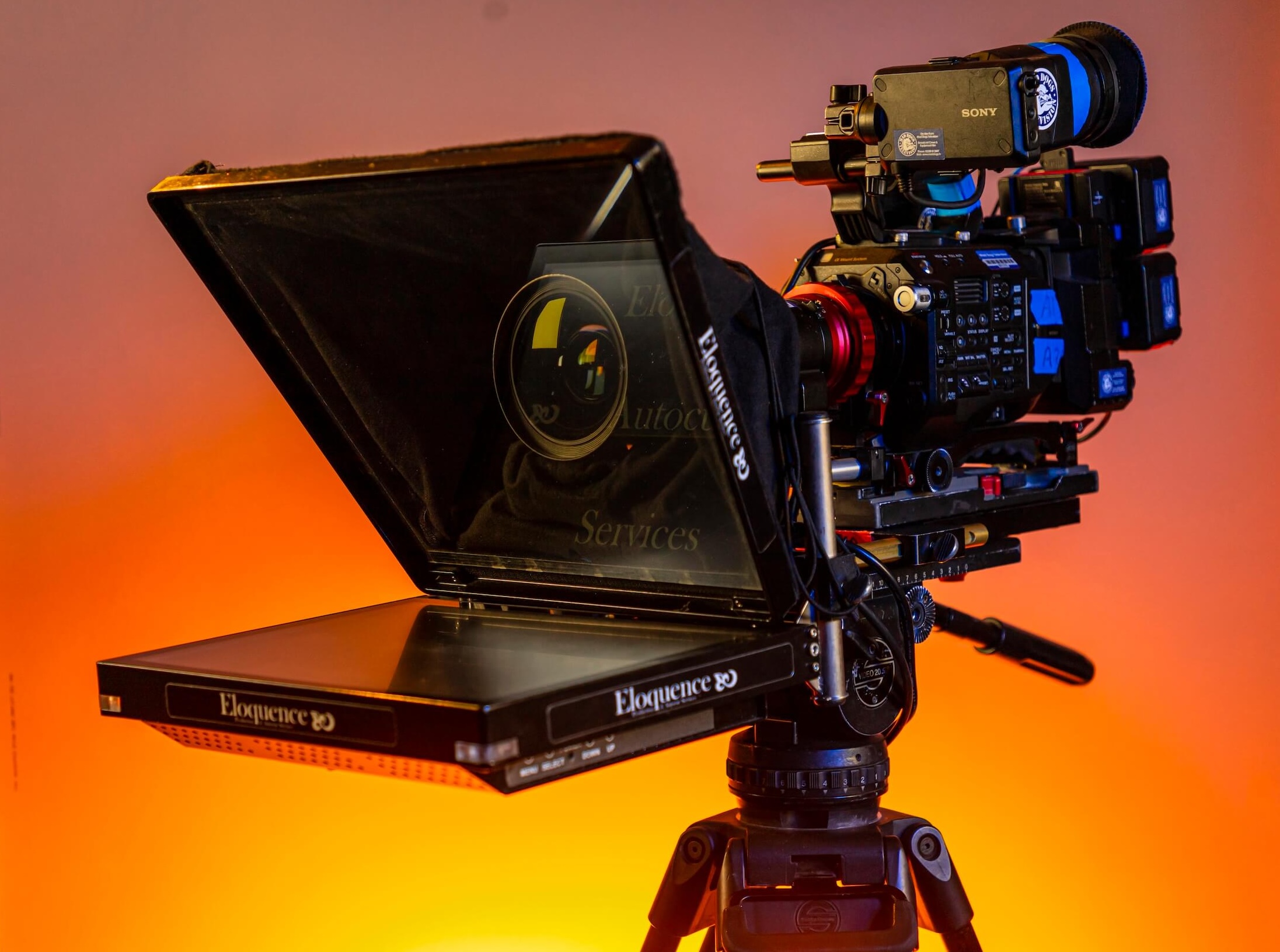 Eloquence supply standalone or camera mounted autocue systems to enable presenters to either film whilst walking and talking or remaining static.